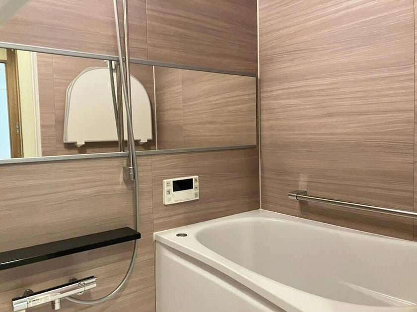 大きな鏡があり、広々とした浴室です♪ゆったりと足を延ばして入れる広さです。