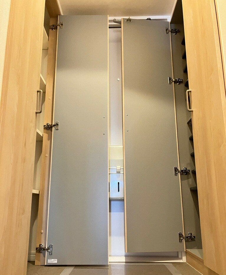 玄関部分には、右側が靴箱 左側にも収納があります。