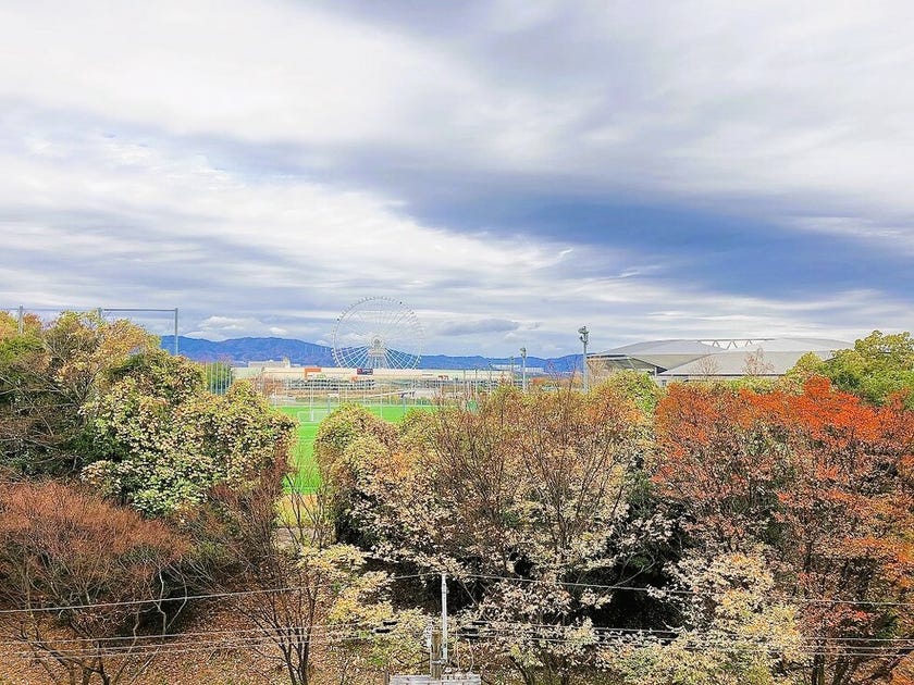 玄関を出ると、EXIPOCITYの観覧車・パナソニックスタジアム吹田が見れます♪