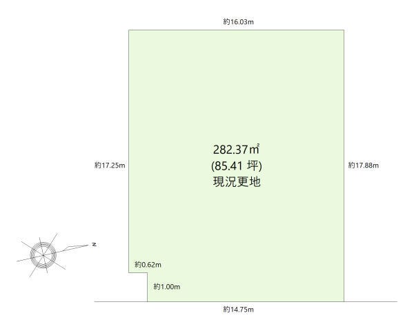 土地面積 公282.37㎡(85.41坪) 接道 東側(公道)幅 約6.4m 間口 約14.75m