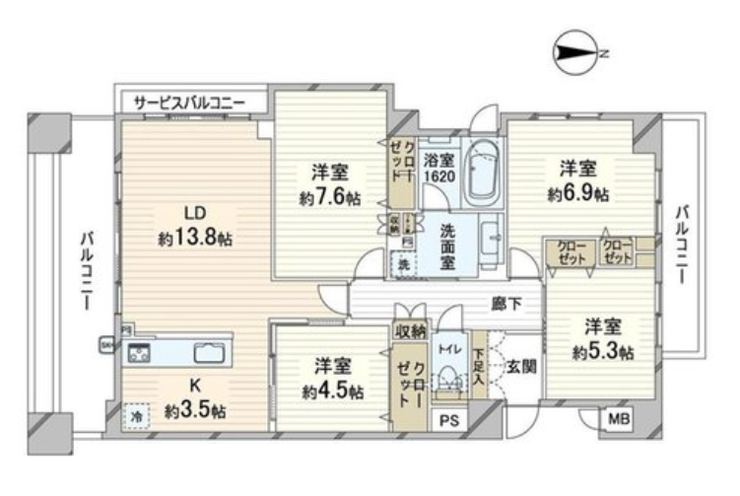 | 主要採光 | 南向 | バルコニー | 南向20.60㎡ |