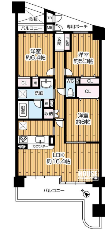 | 主要採光 | 南西向 | バルコニー | 北東向15.11㎡ |