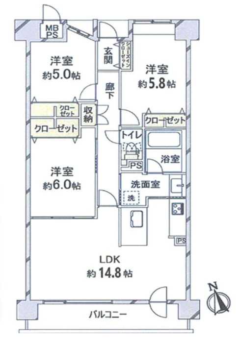| 専有面積 | 壁芯 75.03㎡ | 所在階 | 7階建/2階部分 |